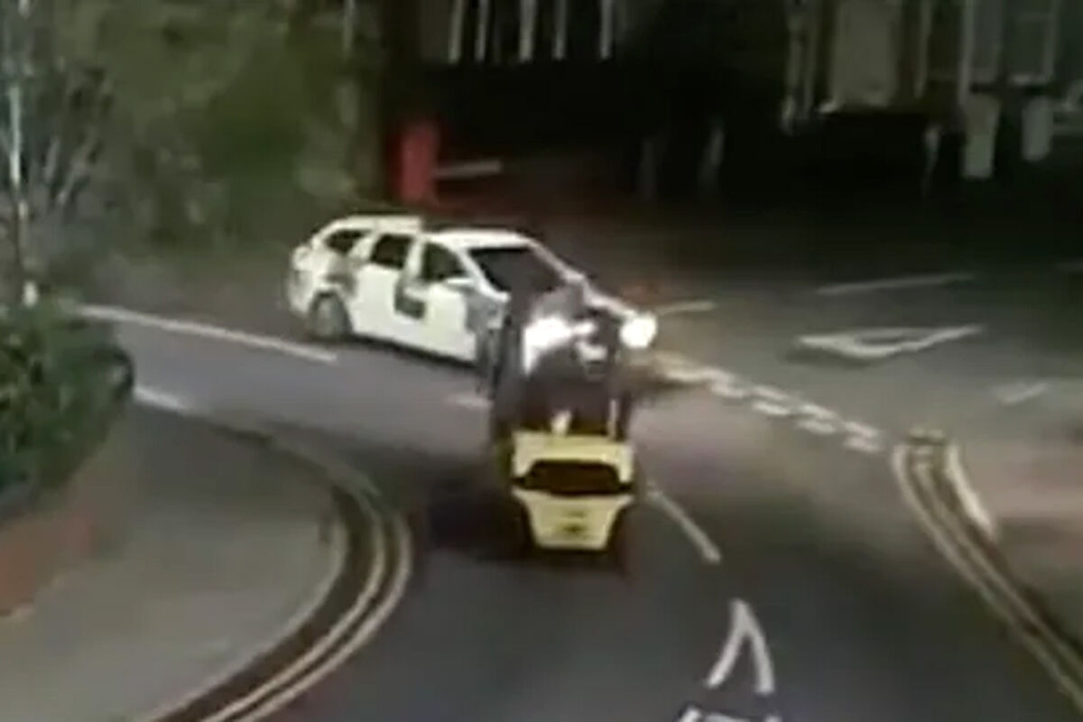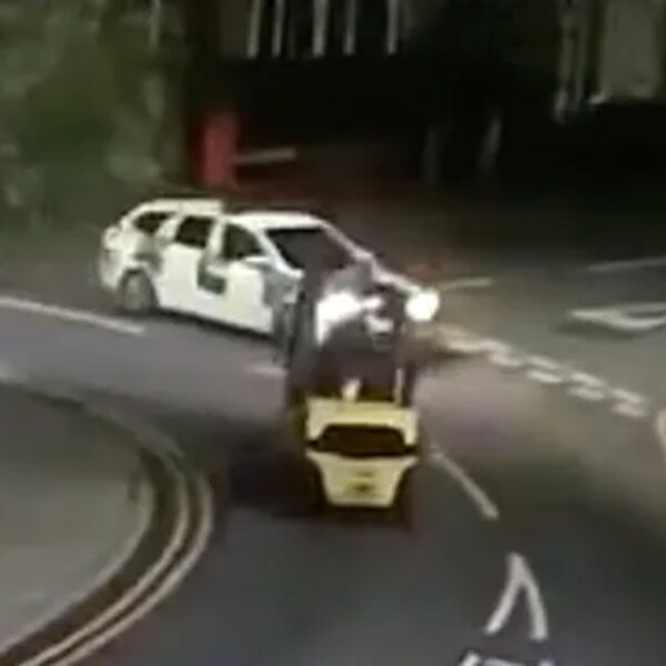 После проезда кругового перекрестка транспортное средство столкнулось с патрульной машиной, двигавшейся навстречу. Полицейские увидели, что водитель держал в руках бутылку виски во время управления погрузчиком.