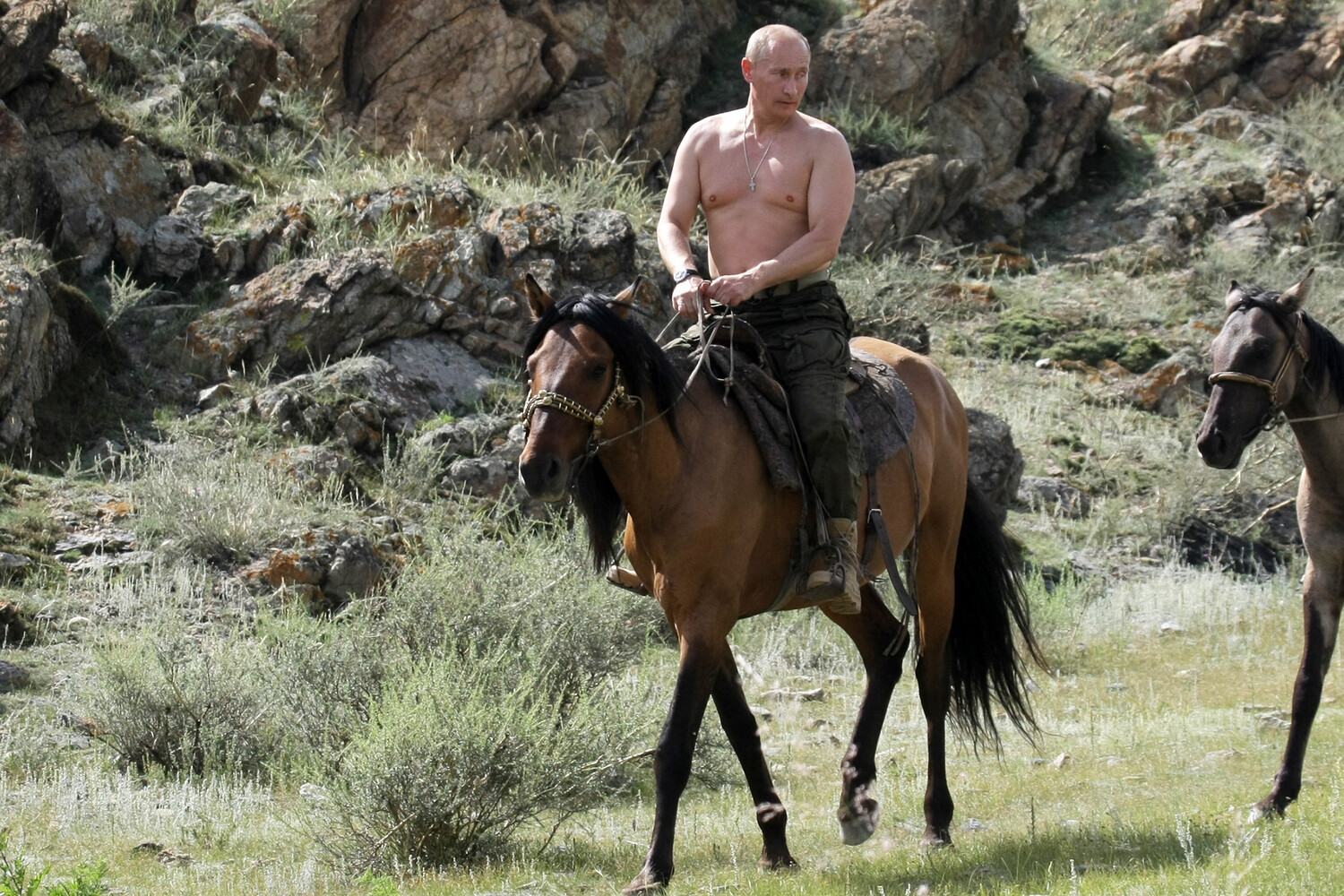Знаменитые снимки Владимира Путина верхом на лошади с обнаженным торсом были сделаны во время его отдыха в Туве в августе 2009 года, когда он занимал пост главы правительства РФ.