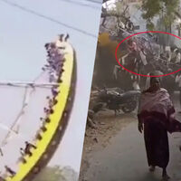 В Индии гигантские качели в форме дракона внезапно обрушились, когда на них находились десятки детей. По предварительным данным, по меньшей мере 14 несовершеннолетних получили травмы, двое из них — в тяжелом состоянии, пишет New York Post.