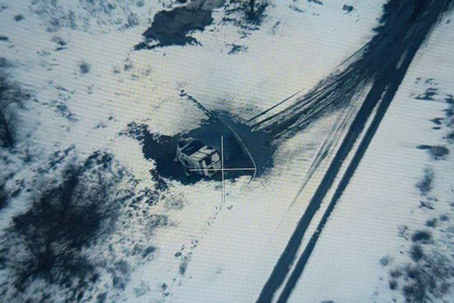 На опубликованном фото видно лежащую на боку машину скорой помощи, вокруг следы взрыва. По словам Сальдо, следов гибели медиков или ранений на месте удара не обнаружено.