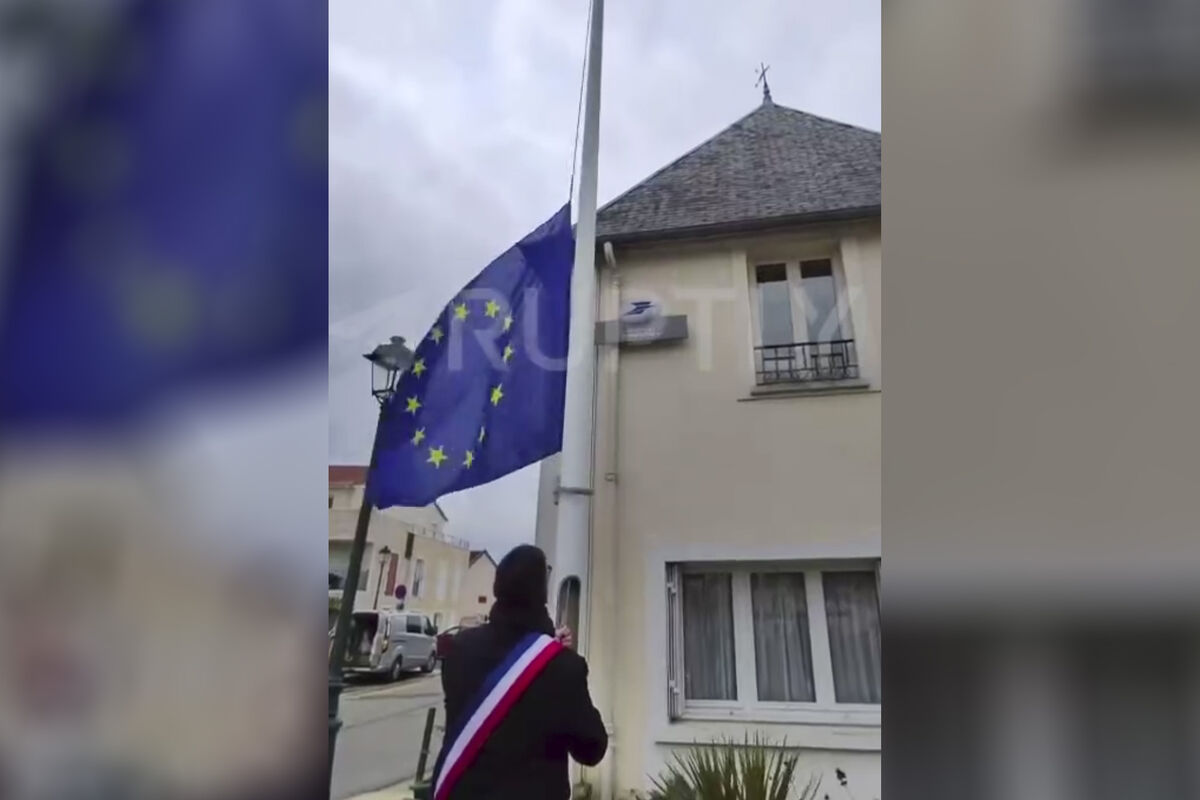 Мэр французского города на камеру снял флаг ЕС с флагштока