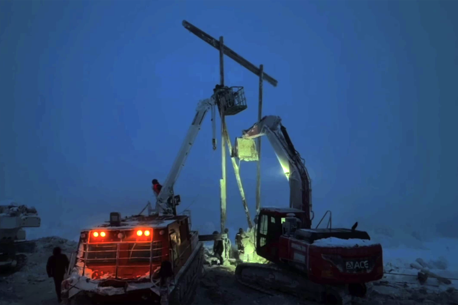На месте аварии в Мурманской области установили временные опоры ЛЭП. Об этом в своем Telegram-канале сообщил губернатор региона Андрей Чибис.