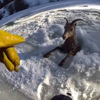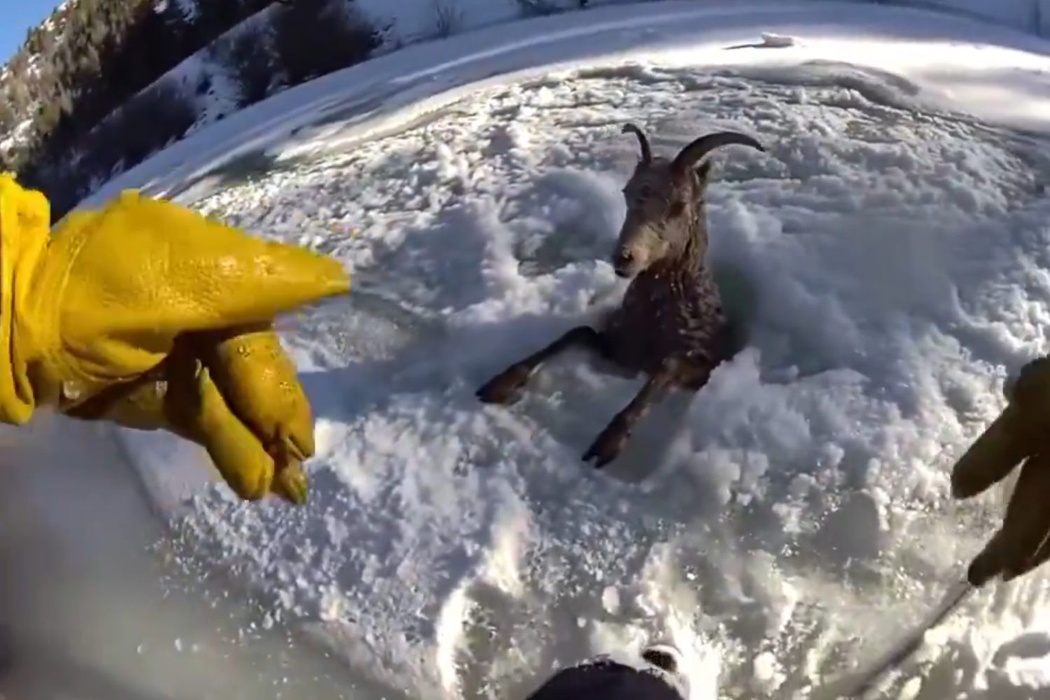 В США запечатлели на видео спасение горного барана из ледяной реки