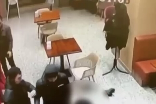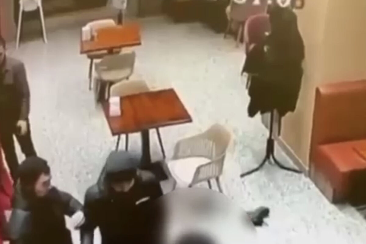 Затем на девушку напали трое мужчин, включая владельца заведения. На кадрах видно, как нападавший наносит потерпевшей удар, из-за чего та падает на пол.