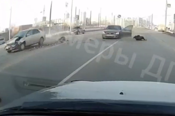 Столкновение произошло утром 2 февраля на перекрестке улиц Взлетная и Крупская. На видеозаписи видно, что после столкновения автомобиль развернуло, передняя дверь распахнулась, а из нее вылетел мужчина. При этом, оказавшись на обочине, он сразу поднялся на ноги.