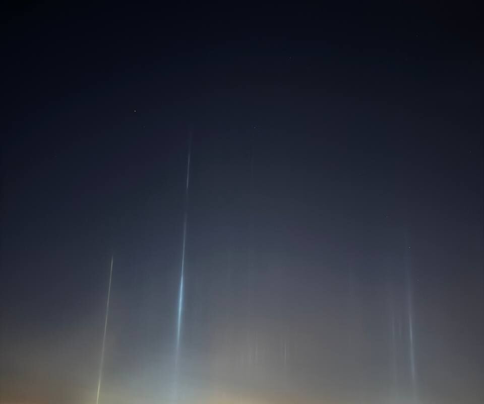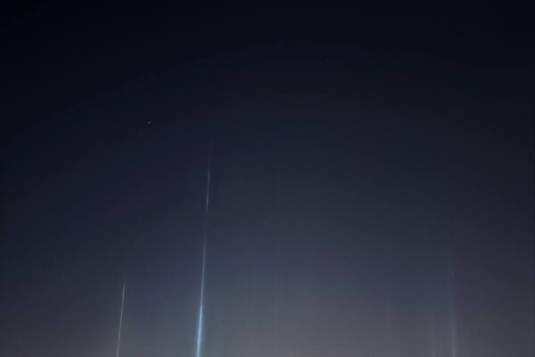 На снимках, сделанных местными жителями, можно заметить вертикальные линии света желтого и голубого цветов. Они появились в ночном небе из-за образования ледяных кристаллов в атмосфере.