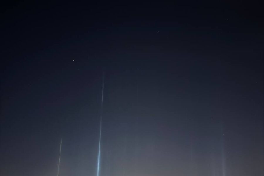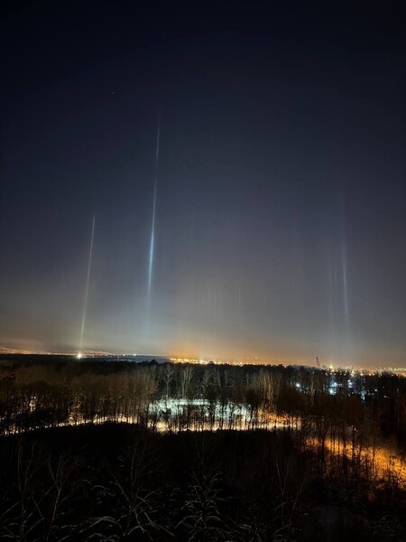 В Москве и области в ночь на 5 февраля заметили необычное природное явление — световые столбы. Фото опубликовал Telegram-канал «КудаМосква».