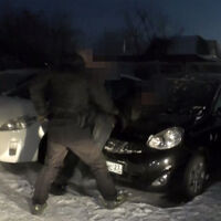 На кадрах видно, как сотрудники правоохранительных органов задерживают подозреваемого на парковке.