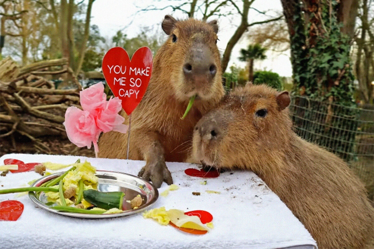 Капибары считаются крупнейшими грызунами в мире — их вес может достигать 60 кг. В природе они живут около восьми лет и обитают у водоемов, хорошо плавая благодаря перепонкам на лапах. В условиях зоопарка животным необходим бассейн и разнообразный растительный корм.