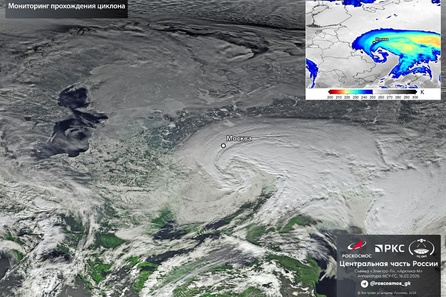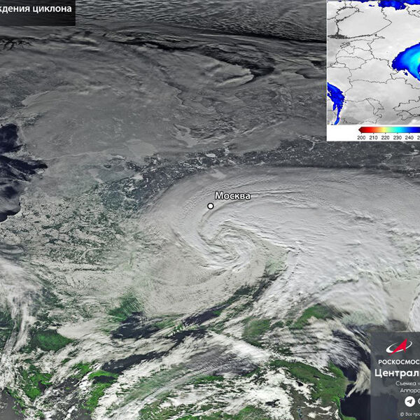 В сообщении отмечается, что этот циклон пришел на смену предыдущему, принесшему обильные снегопады в столицу. Сформировавшись в Средиземном море неподалеку от Балкан, он был зафиксирован спутниками «Роскосмоса», о чем и свидетельствует опубликованный снимок.