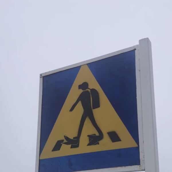 Пародию на знак пешеходного перехода с идущим по «зебре» аквалангистом поставили на обочине дороги в рабочем поселке Листвянка Иркутского района неподалеку от дайвинг-центра «Байкал — Фартовый».