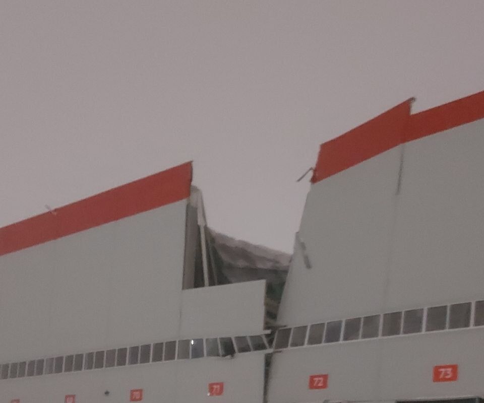 По его данным, крыша частично обрушилась на складе супермаркета в индустриальном парке «Южный». В момент происшествия людей внутри не было.