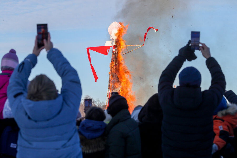 Минкульт России: 25-метровое чучело сожгли в Москве в честь Масленицы