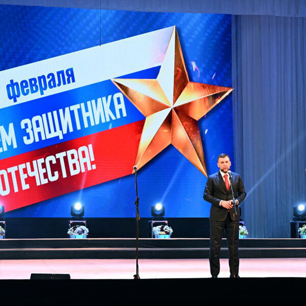 В Донецком государственном академическом театре оперы и балета 20 февраля состоялось торжественное мероприятие, посвящённое Дню защитника Отечества. Глава Донецкой народной республики Денис Пушилин поздравил военнослужащих и ветеранов боевых действий, а также вручил государственные награды за мужество и отвагу, проявленные в боях за ДНР.