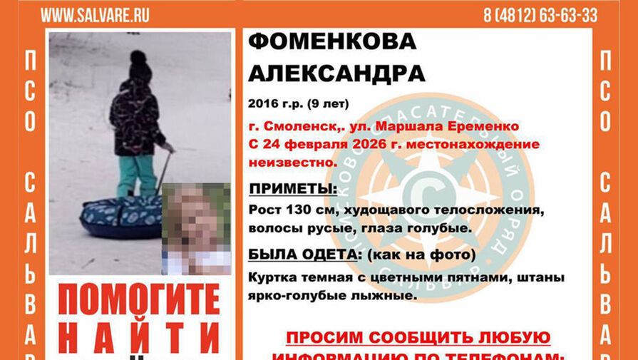 В Смоленске ищут девятилетнюю школьницу, которая утром 24 февраля ушла гулять с собакой и не вернулась. Мэр Смоленска Александр Новиков в своем Telegram-канале призвал возможных очевидцев откликнуться.
