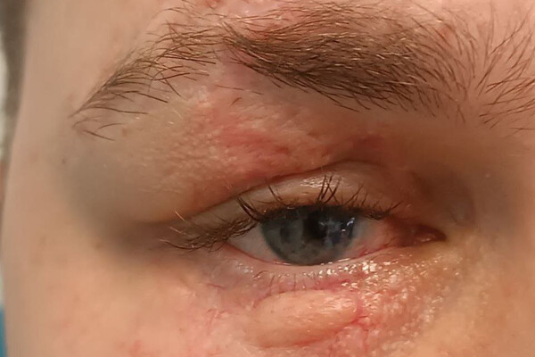 Сейчас мужчине уже сняли швы — теперь о травме мужчине напоминают лишь небольшие рубцы. В будущем пациенту предстоит эндовитреальная операция и имплантация хрусталика, чтобы улучшить зрение.