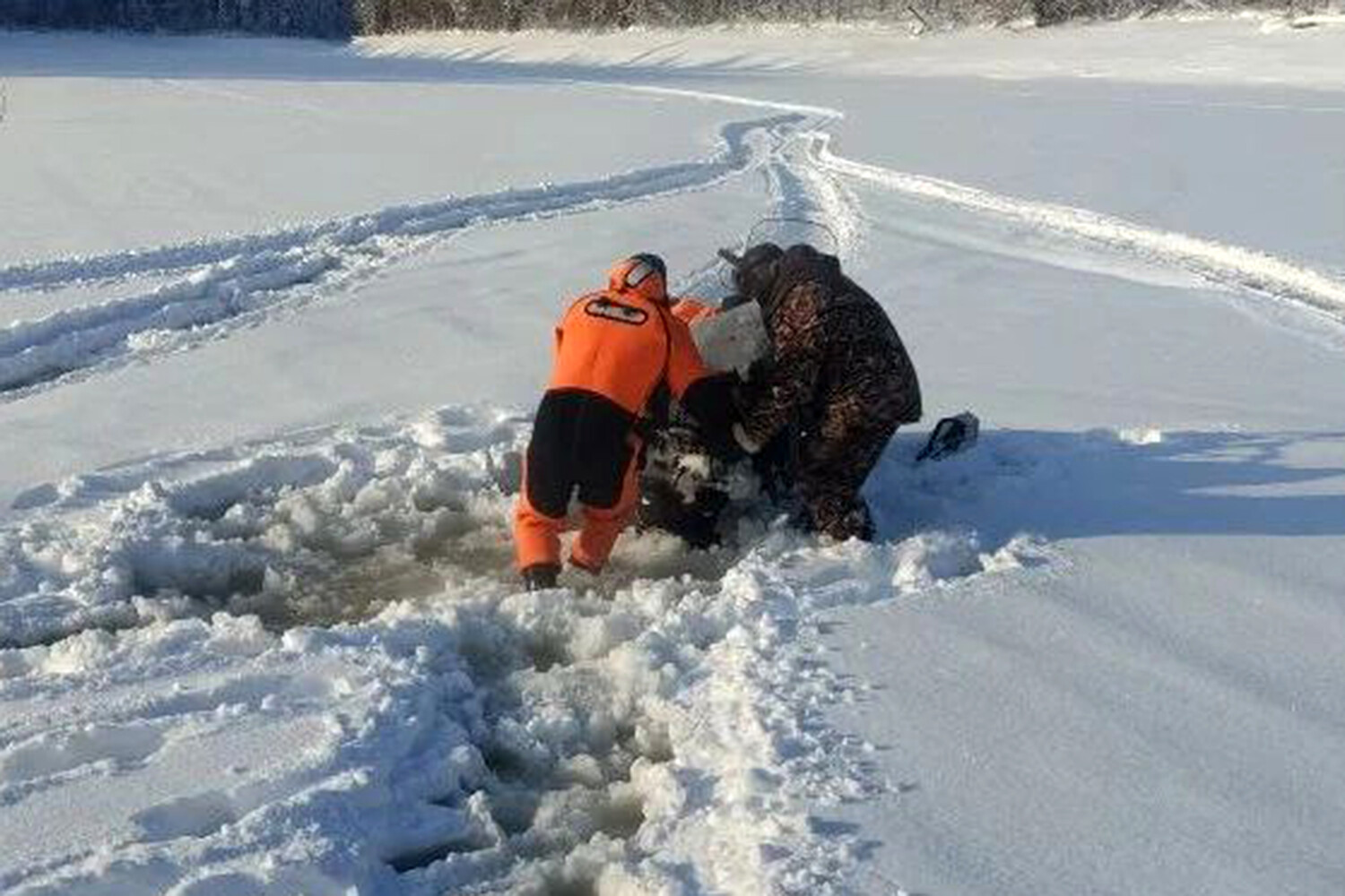 В Башкирии спасли мужчину, провалившегося под лед на снегоходе