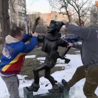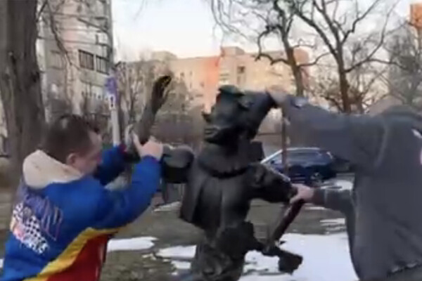 По словам авторов поста, инцидент произошел в Кривом Роге в Днепропетровской области, где местные объявили деревянного человечка символом советской эпохи и решили демонтировать его. На записи видно, как двое мужчин сначала расшатывают памятник сказочному персонажу, а затем валят его на землю.