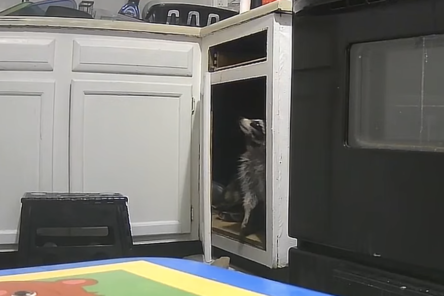 Женщина рассказала, что переехала в новый дом менее месяца назад. Первые странные звуки в потолке она услышала спустя пару дней после новоселья. А позже ей удалось снять на видео, как енот проникает в квартиру через отверстие в кухонном шкафу.