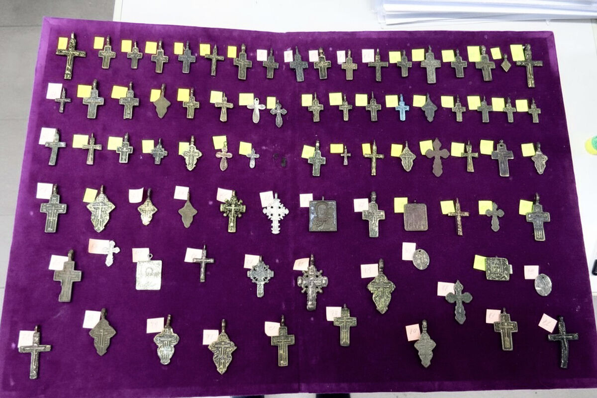 Пассажир выбрал «зеленый» коридор для прохождения контроля, но попал под выборочную проверку. С помощью рентген-аппарата инспекторы обнаружили спрятанные в его чемодане предметы: 44 медные монеты, 76 нательных крестов и шесть миниатюрных икон.