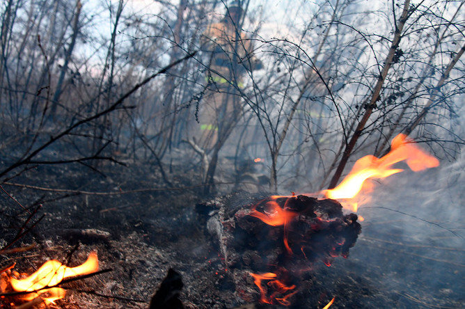 Глава населенного пункта уточнил, что огонь распространился на площади 1500 квадратных метров. На место происшествия прибыли сотрудники специальных служб.