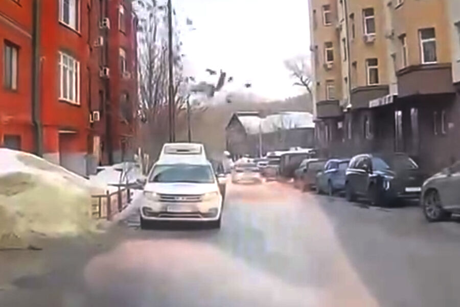 В Казани на автомобиль обвалилась часть крыши многоквартирного жилого дома, момент обрушения попал на видео. Об этом сообщает Telegram-канал «Казань на максималках».