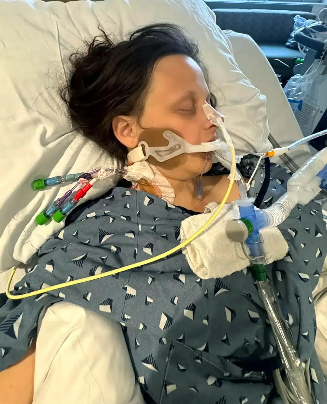 «Я проснулась и увидела три капельницы, меня интубировали, у меня был центральный катетер в шее и назогастральная трубка. Я совсем не могла двигаться. Это было очень страшно — я не могла говорить и не могла ходить», — рассказала она.
