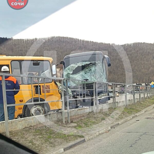 В Сочи произошло столкновение школьного и экскурсионного автобусов. Об этом сообщает Telegram-канал «ЧП Сочи».
