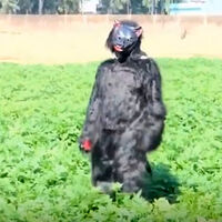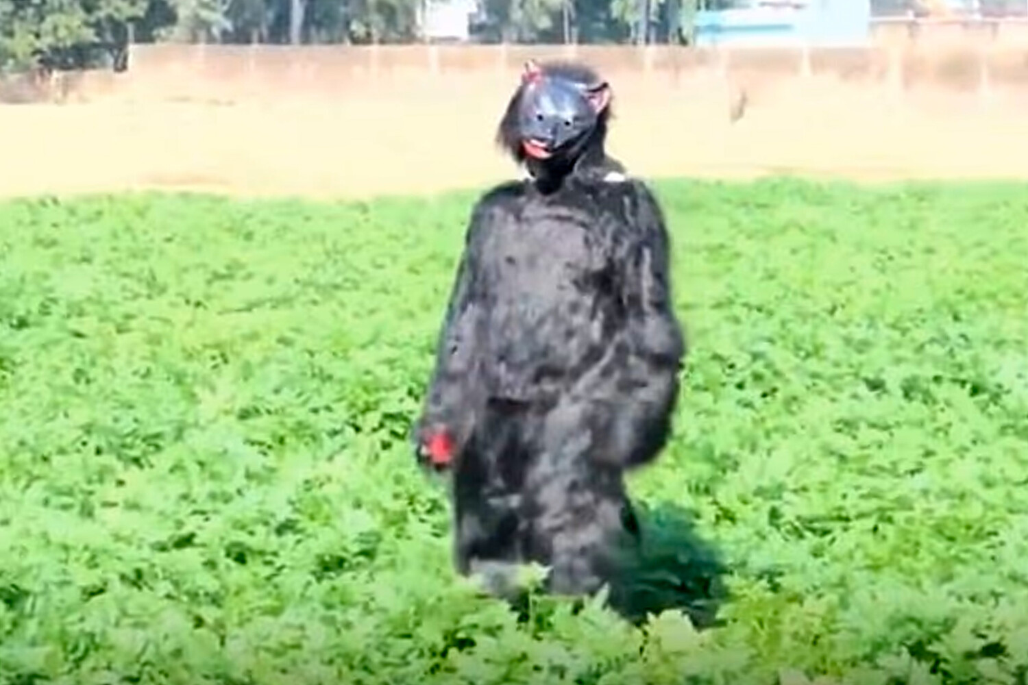 В Индии фермеры переодеваются в медведей, пытаясь отпугнуть обезьян, едящих картошку