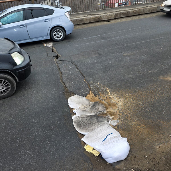 Во Владивостоке заложили трещины на Рудневском мосту лапшой и мешками с песком