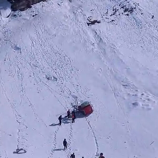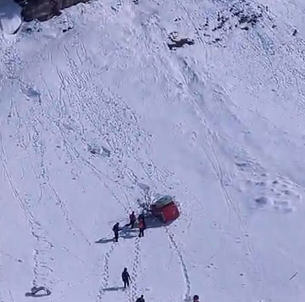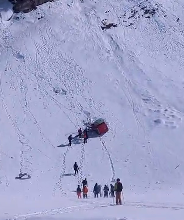На курорте Титлис в Швейцарии кабина канатки рухнула на горный склон