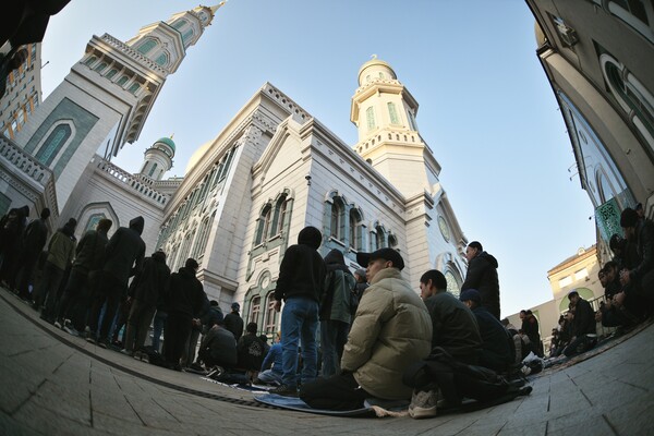 В Москве на молитву собрались тысячи человек — как в самой Соборной мечети, так и на прилегающих улицах.
