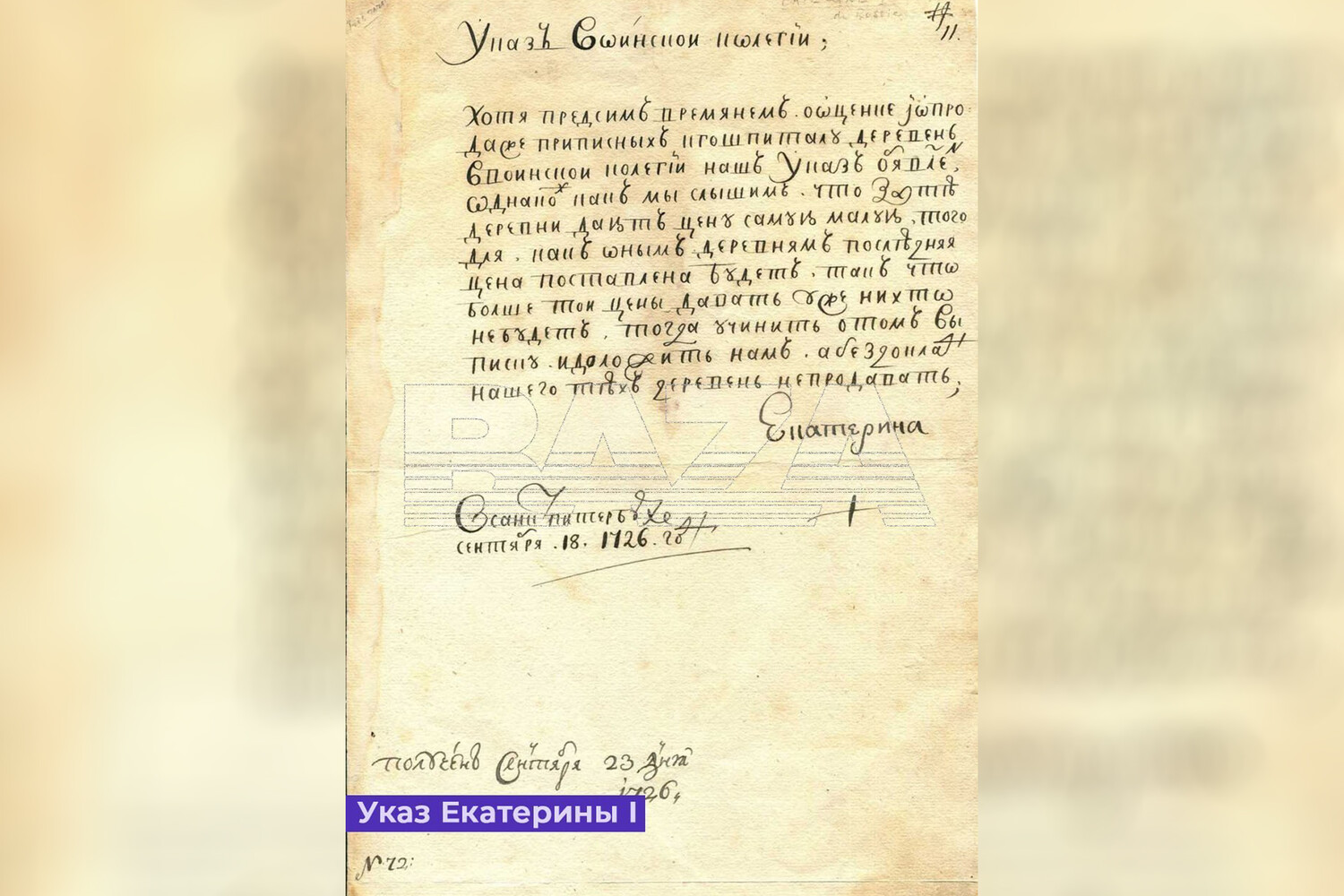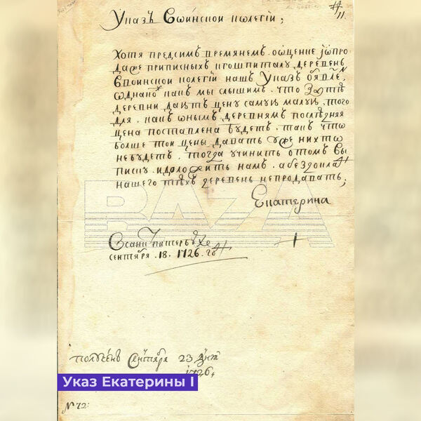 Канал отмечает, что ранее стало известно об исчезновении указа Петра II, который впоследствии был выставлен на торги на французском аукционе и продан за €3120.
