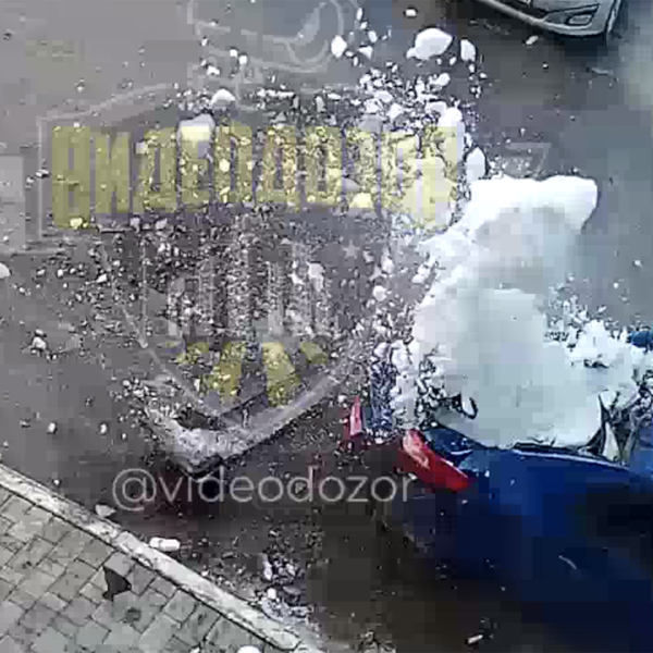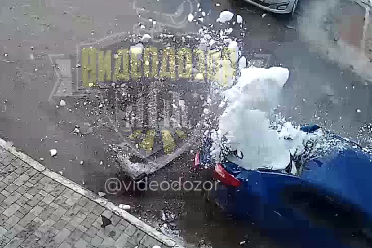 Ледяная глыба рухнула на машину в Башкирии и раздавила ее, это попало на видео
