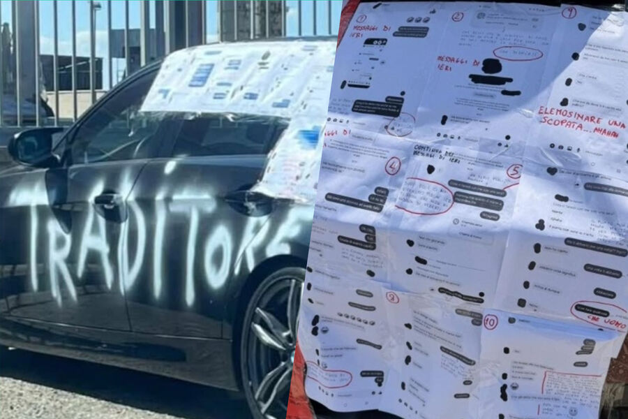 Женщина в Италии обклеила автомобиль парня, стоящий в центре города, его переписками с другими, пишет Leggo.