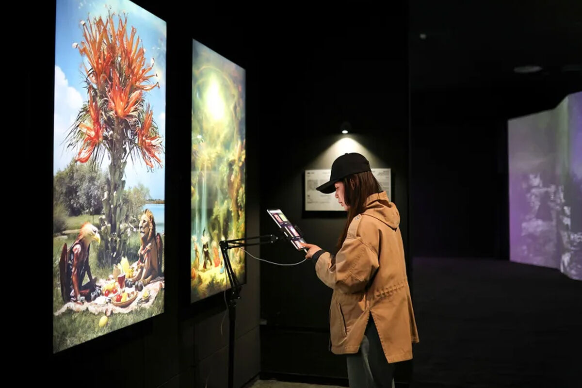 ИИ-художник записывал посетителей выставки с помощью двух камер, анализировал эмоции и в реальном времени превращал их в сюрреалистические цифровые видеоработы.