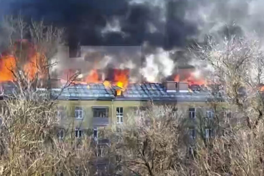 «Огонь полностью охватил кровлю. По словам местных жителей, очаг возгорания находился на одном из балконов, а после перекинулся на крышу», — сказано в посте.
