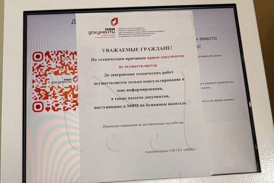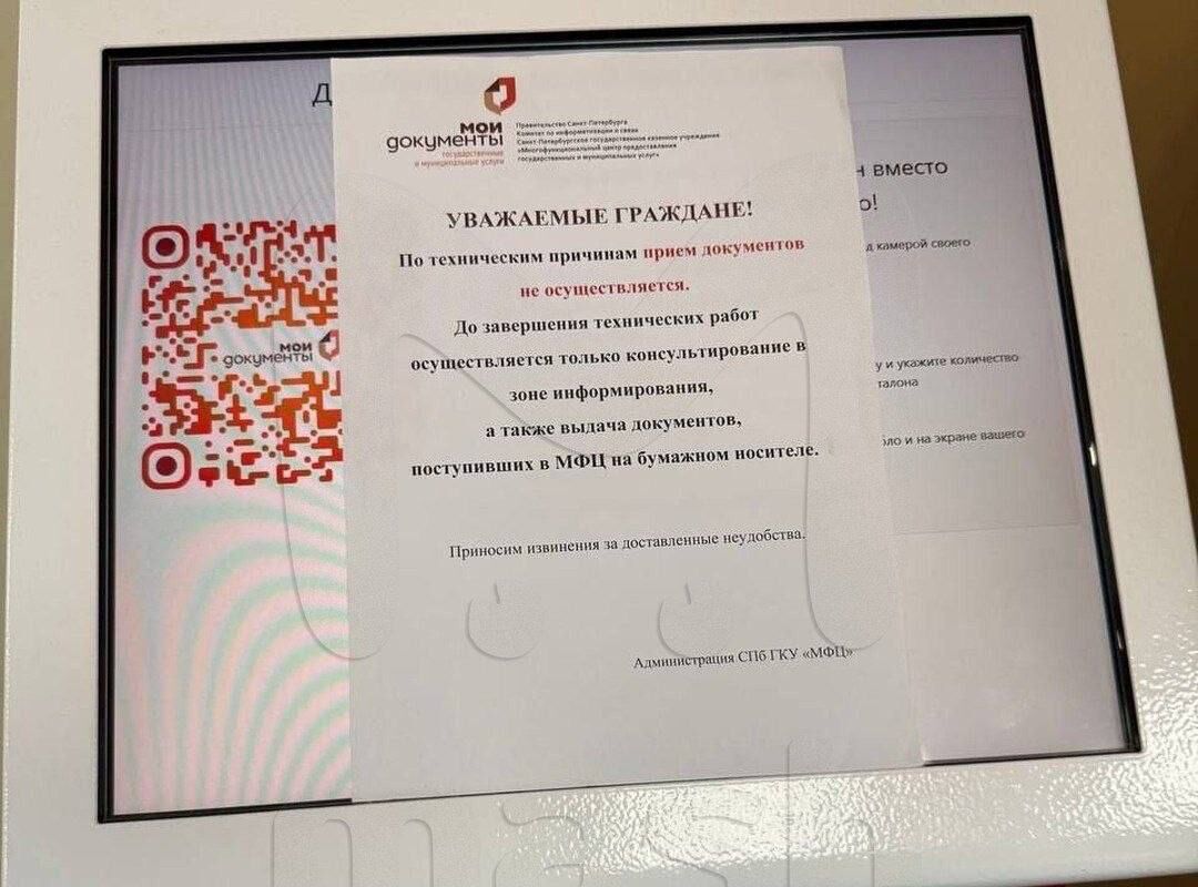 Mash: все МФЦ в Петербурге перестали принимать документы из-за сбоя