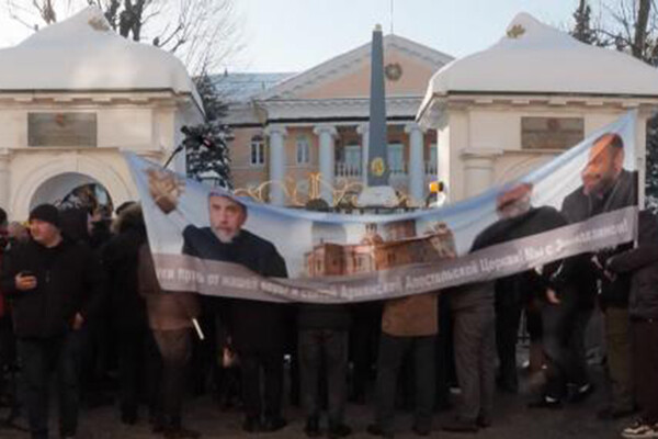 У посольства Армении в Москве состоялся митинг в поддержку Армянской апостольской церкви