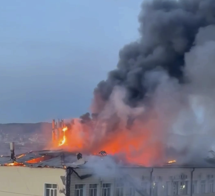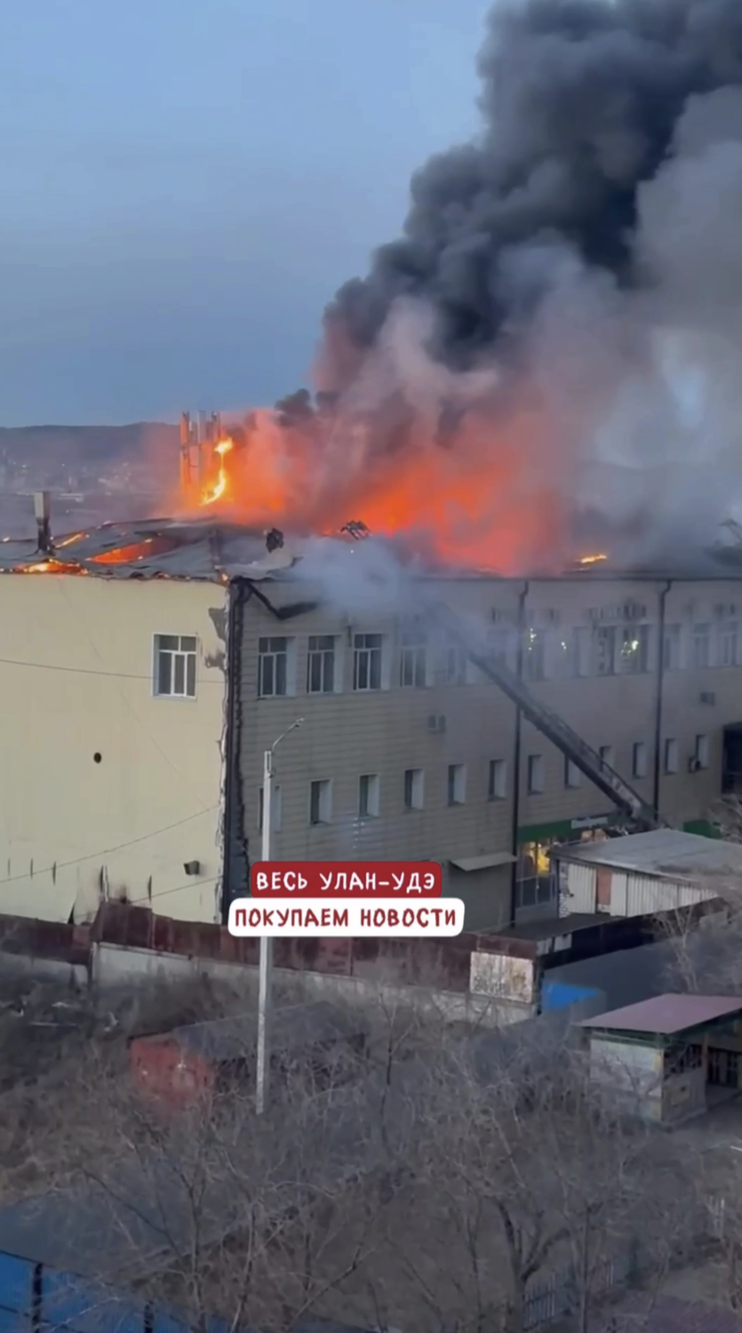 Telegram-канал «Весь Улан-Удэ» опубликовал кадры с места происшествия. На них видно, как сотрудники экстренных служб стоят на полыхающей крыше здания и пытаются ликвидировать пламя.