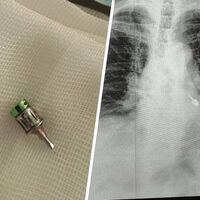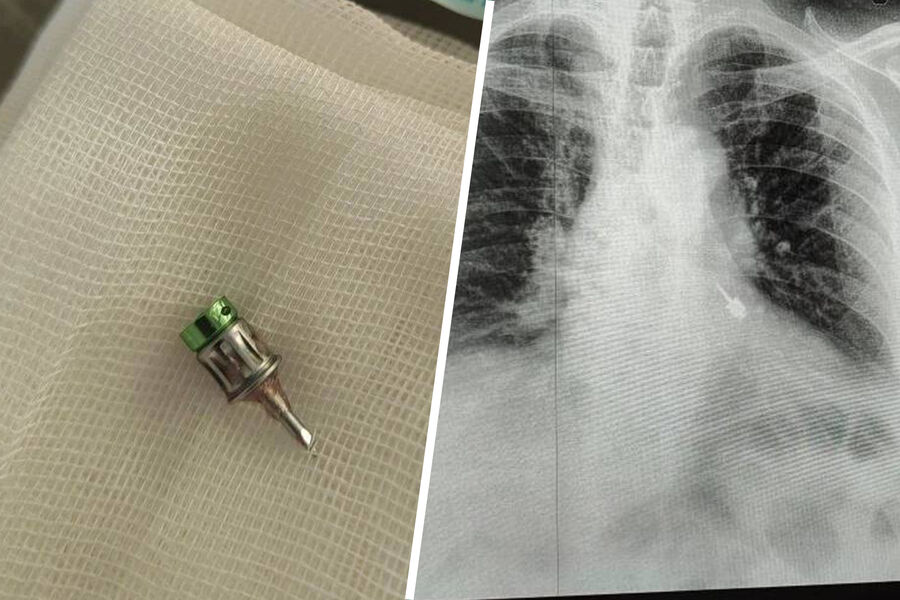 Обследование показало, что бур находится в левом бронхе — врачи экстренно провели пациенту бронхоскопию и с помощью эндоскопического оборудования аккуратно достали этот бур, не повредив окружающие ткани.