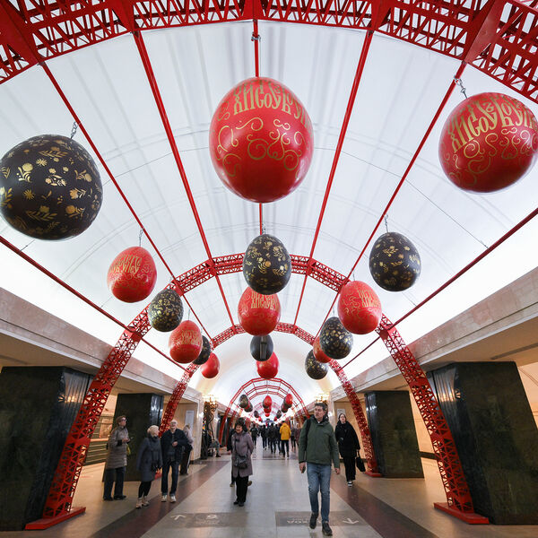 Отмечается, что пасхальные яйца развешаны под сводом потолка станции. Увидеть украшения можно будет до 13 апреля включительно.