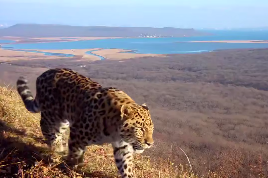 В Приморье самец леопарда попал в кадр фотоловушки на фоне Владивостока