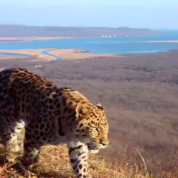 Дальневосточный леопард попал в кадр фотоловушки в Приморье, недалеко от полуострова Песчаный. Камера запечатлела хищника на фоне очертаний города Владивостока, где видны Золотой и Русский мосты, снимок был размещен в соцсетях национального парка «Земля леопарда».
