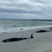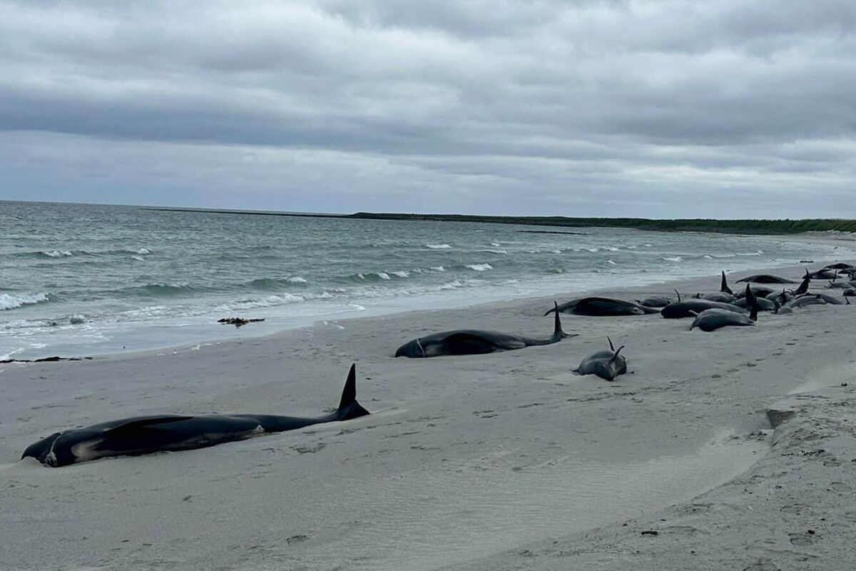В начале марта в Шотландии на пляже Трейг-Мор обнаружили 55 выбросившихся китов. Причиной массовой гибели стали осложнения при родах у одной из самок. Спасатели из Британской службы спасения морских животных (BDLMR), прибывшие на место, констатировали, что 15 китов еще живы, однако сложные погодные условия – шторм и отсутствие надежной связи – значительно затруднили операцию по спасению. В итоге из воды удалось вернуть лишь одно животное.