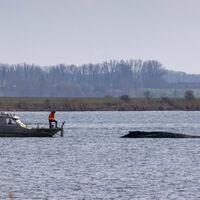 В статье говорится, что сотрудники экстренных служб продолжают орошать кита водой, в том числе, чтобы проверить жив ли он. На этом фоне местный министр окружающей среды Тилль Бакхаус заявил о прекращении попыток спасти животное — не из-за отсутствия денег, а из-за его плохого здоровья и отсутствия перспектив.