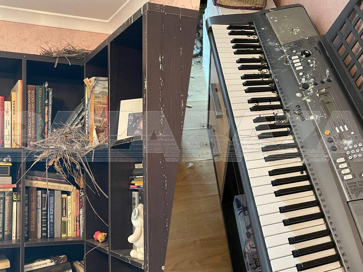 За время отпуска хозяйки голуби испачкали всю мебель, полы, безнадежно испортили синтезатор и стеллажи с книгами. Кроме того, птицы свили гнезда прямо в комнатах.