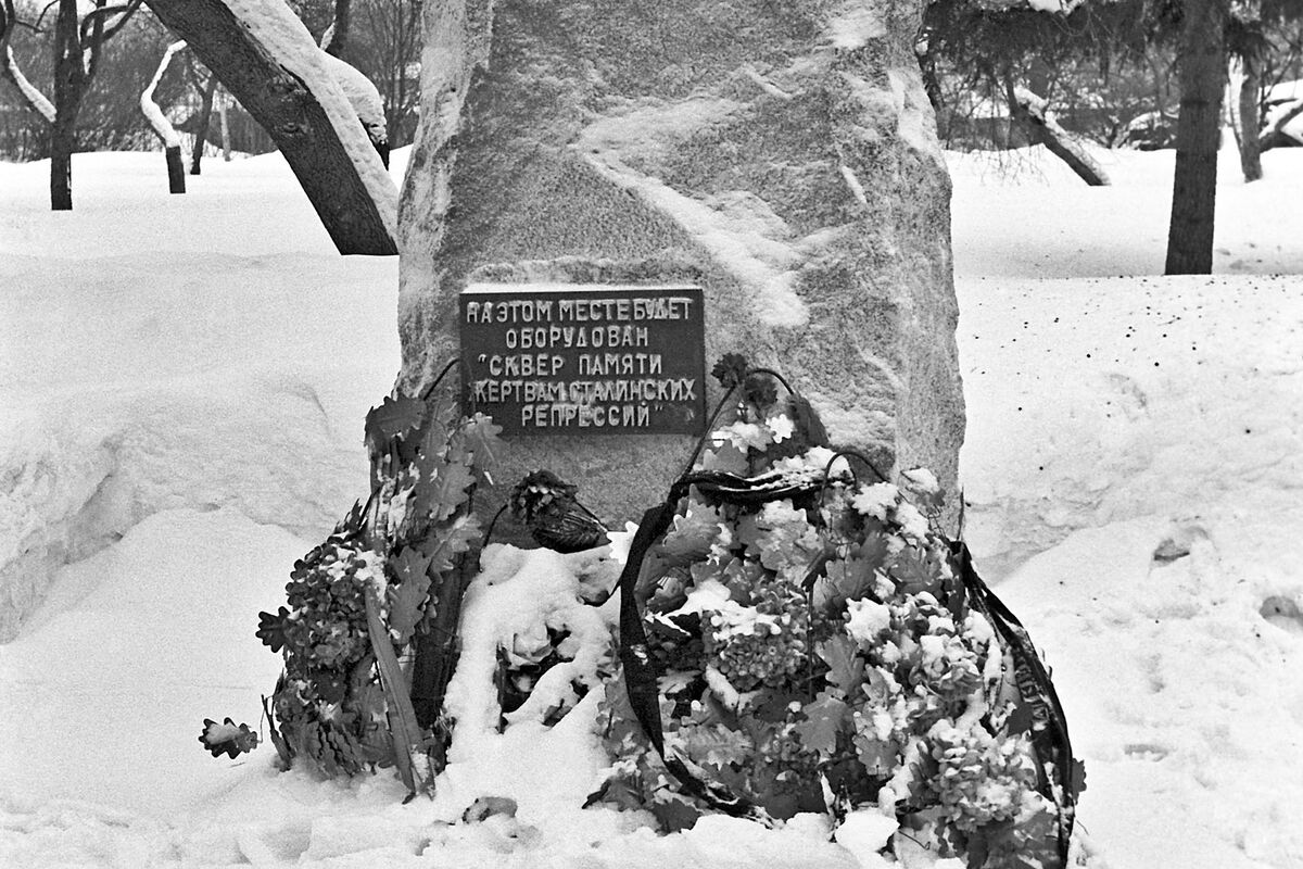 Камень скорби в городе был установлен в 1992 году в память о жертвах большевистского террора. Вблизи находились памятные знаки репрессированным калмыкам, эстонцам, полякам, латышам и литовцам.