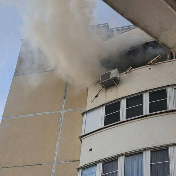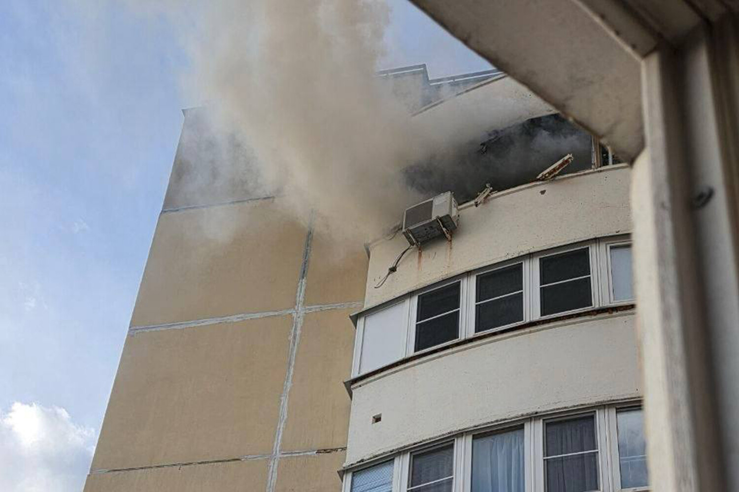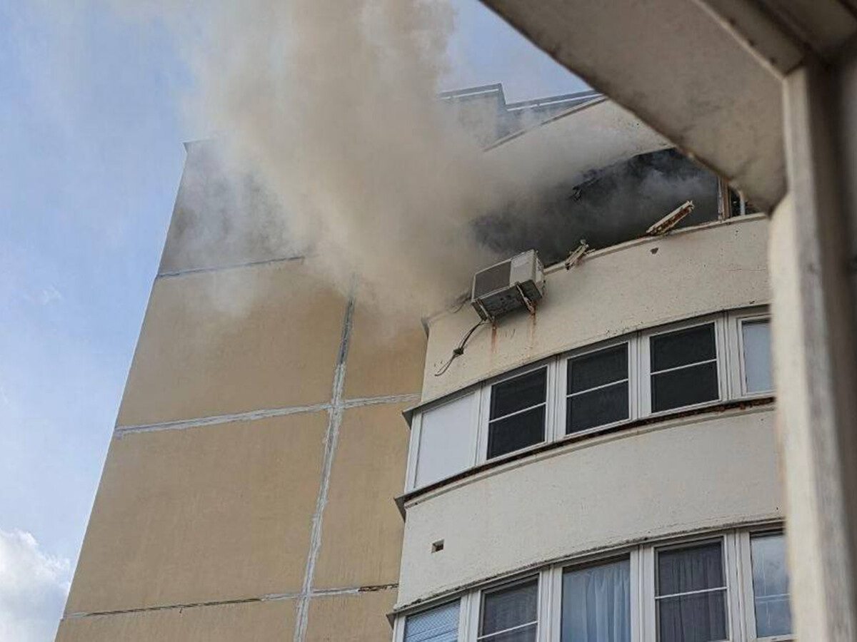 На кадрах с места заметно, как густой дым валит из одной квартиры. В окнах выбило стекла, они упали на припаркованные автомобили.