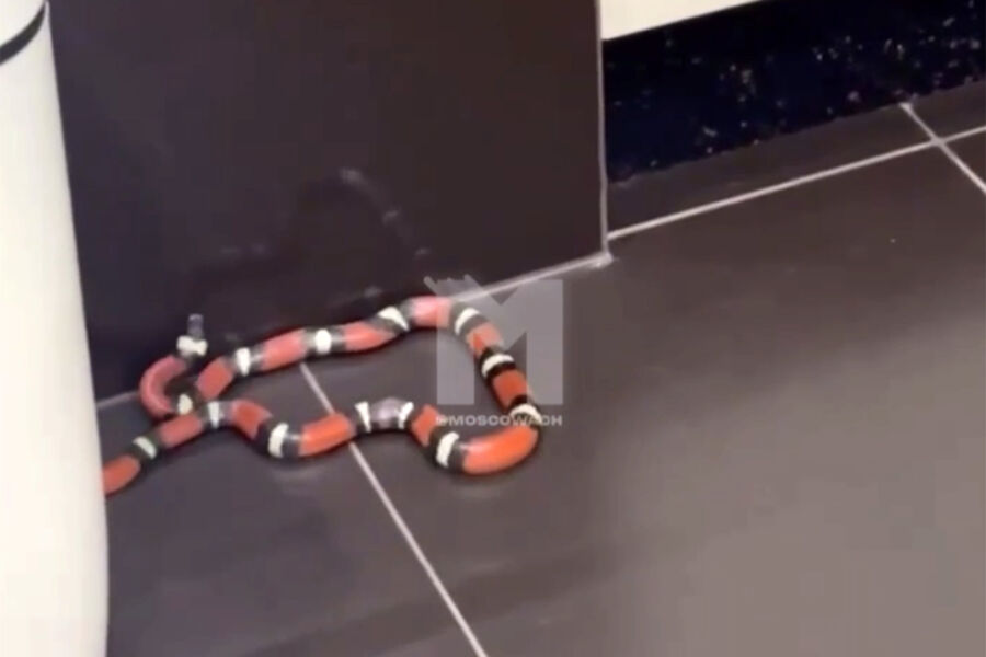 В Москве мужчина зашел в туалет у себя дома и нашел там ярко-красную змею. Об этом сообщает Telegram-канал «Москвач».